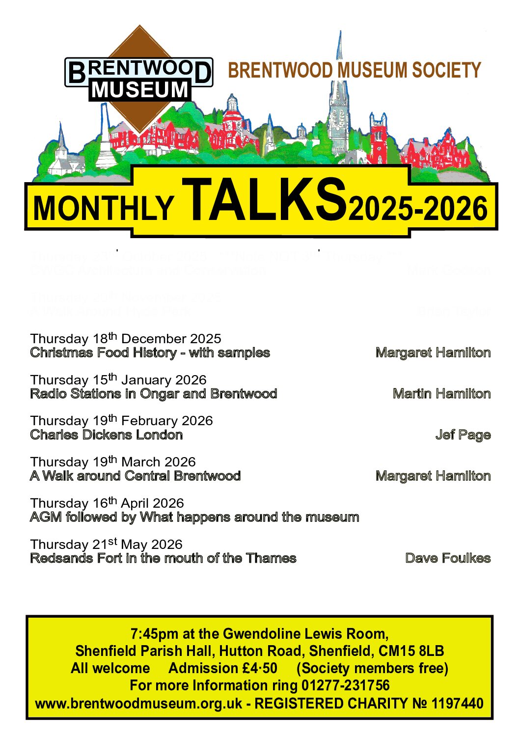 Become a member of the Brentwood Museum Society and enjoy free historical talks and other events including a summer party and Christmas festivities. Membership is just £20 per year.